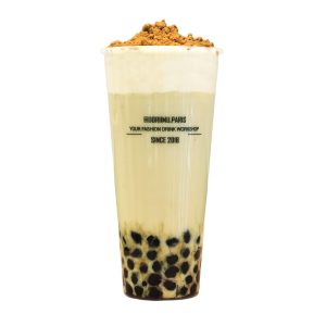 Thé noir, Lait en poudre, Lait de vache, Crème fait maison, Tapioca noir mariné, Biscuit écrasé